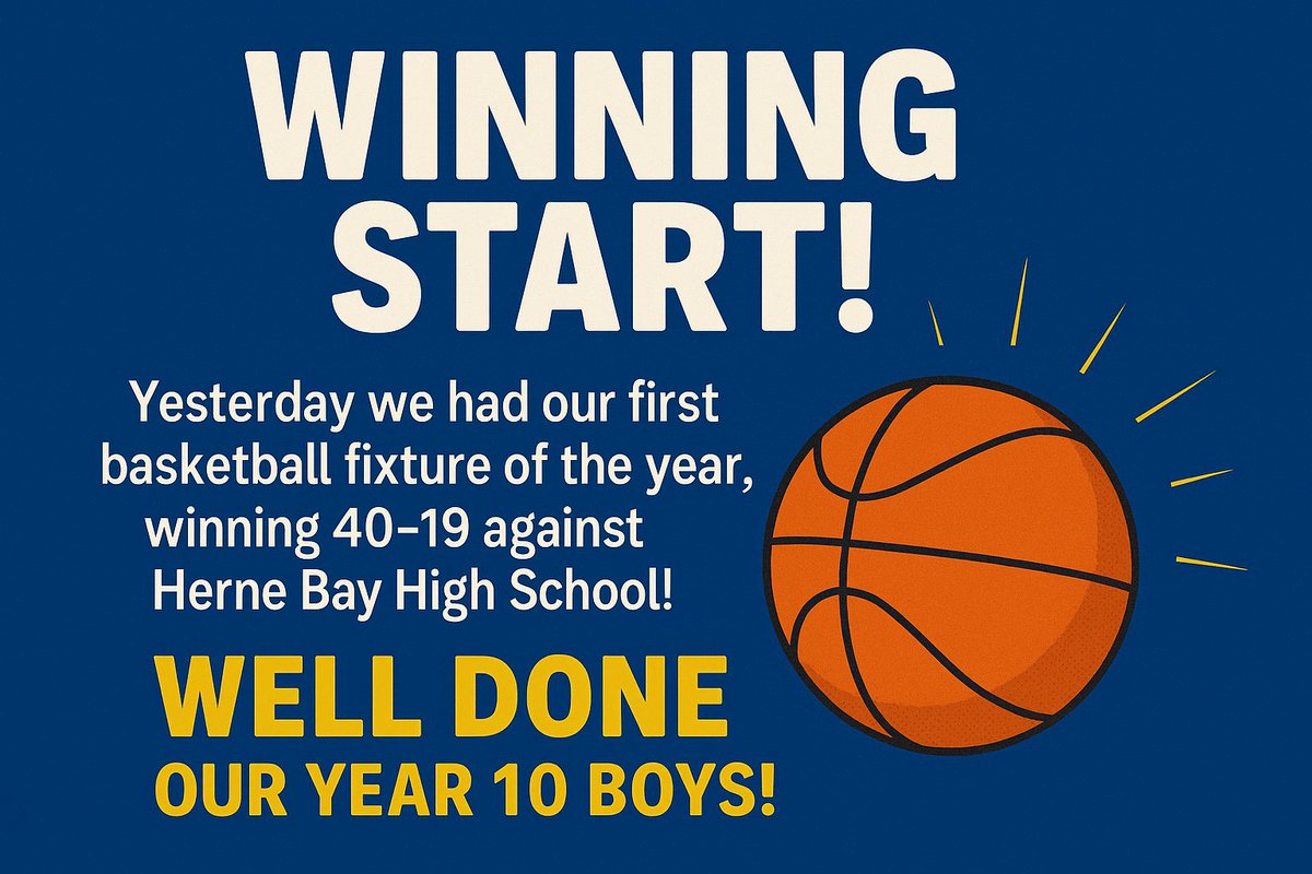 🏀 First basketball fixture of the year and what a start! Our Year 10 Boys smashed it with a 40-19 win against Herne Bay High School! 👏Well done, team – on to the next!